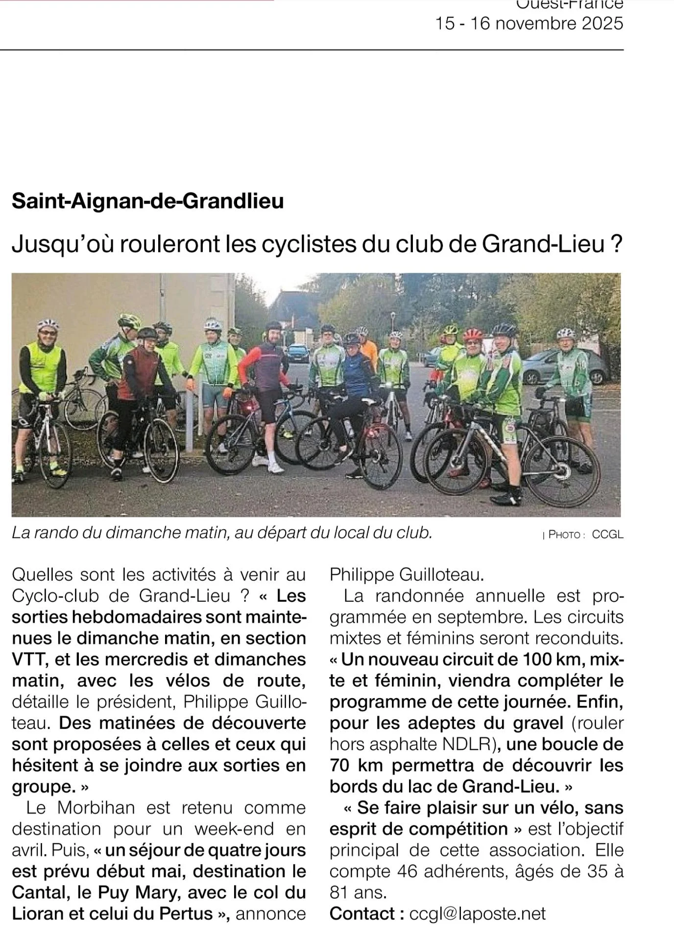 DIMANCHE 14 SEPTEMBRE 2025, départ de St Aignan de Grand Lieu (44)
